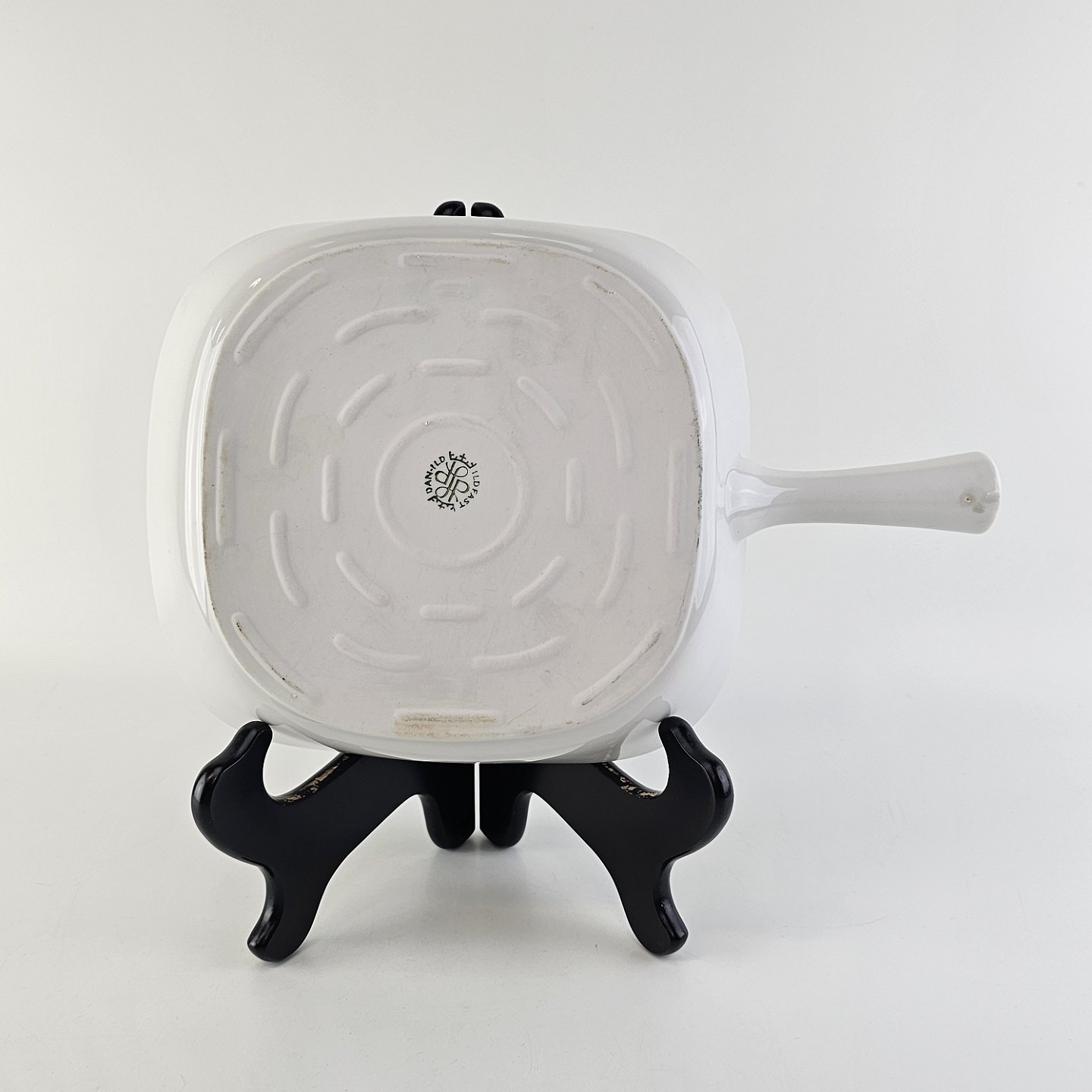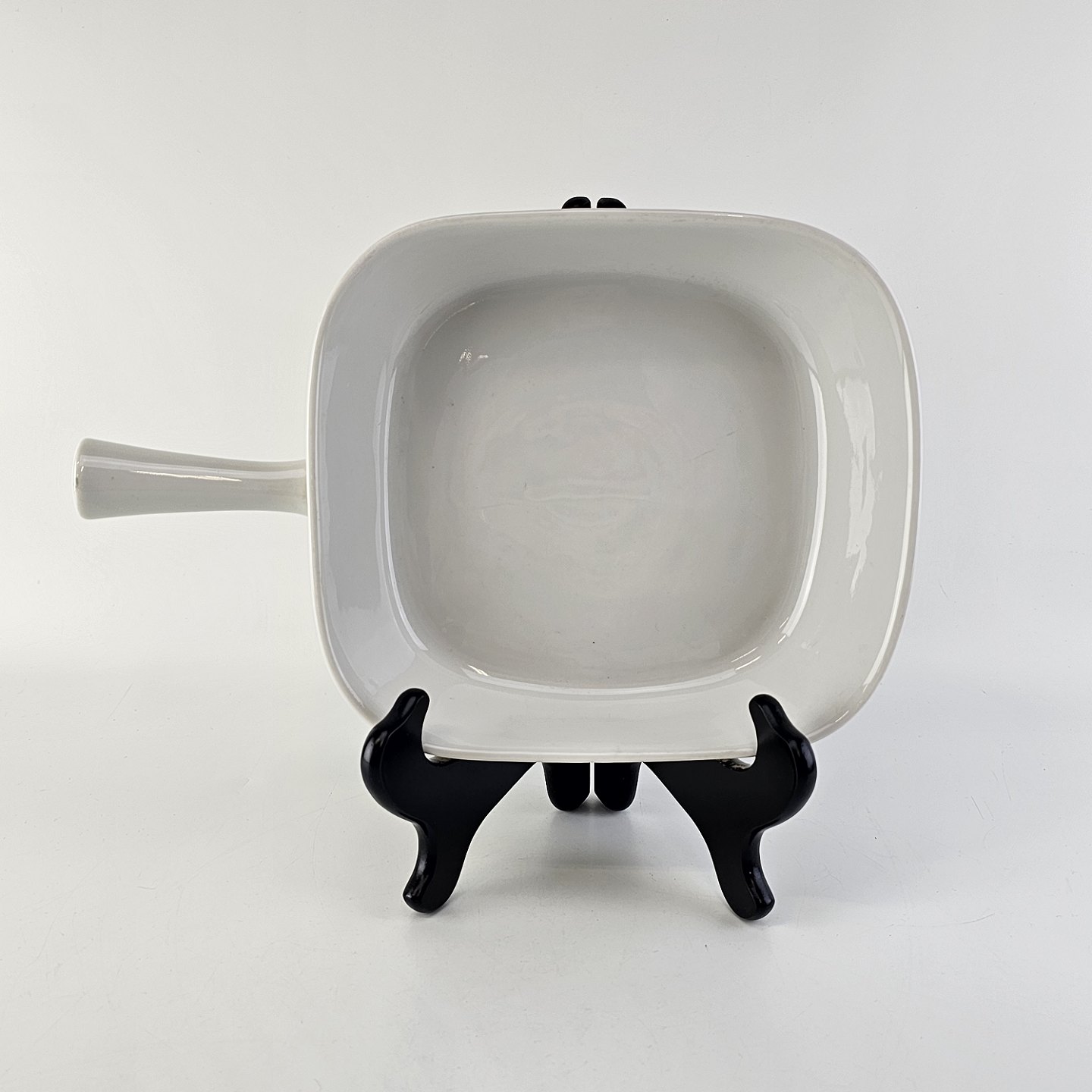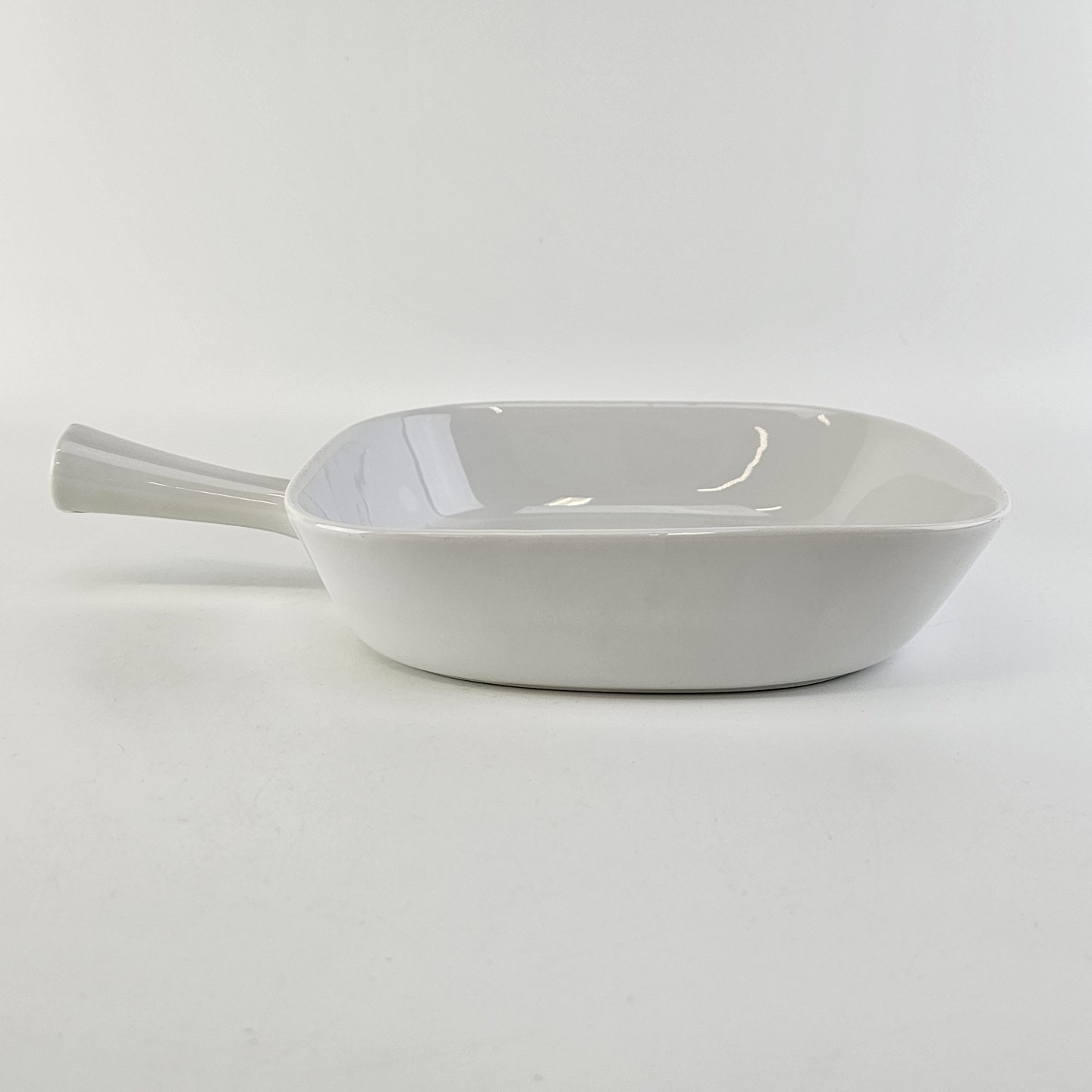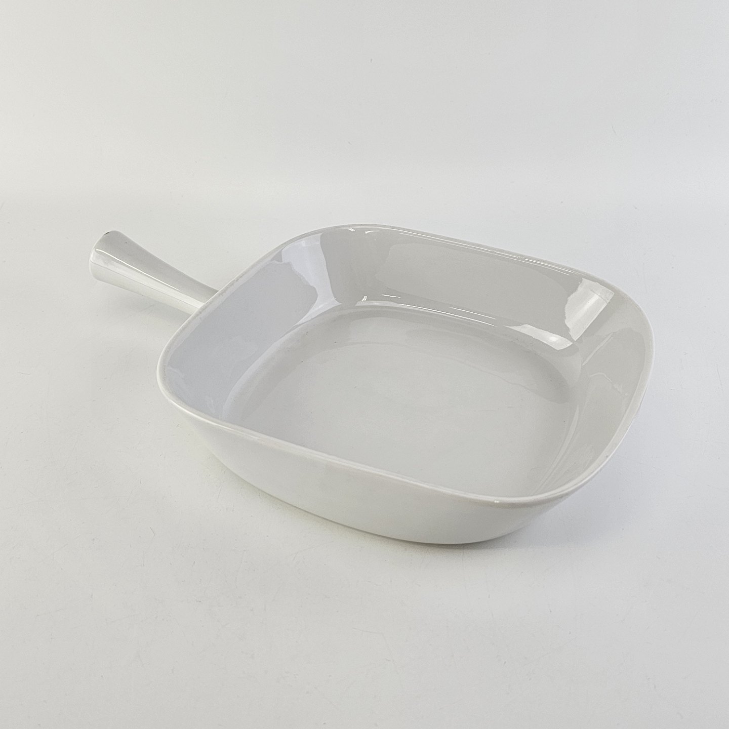 Firkantet fad med håndtag i porcelæn fra stellet Hvid Glasurfarvet