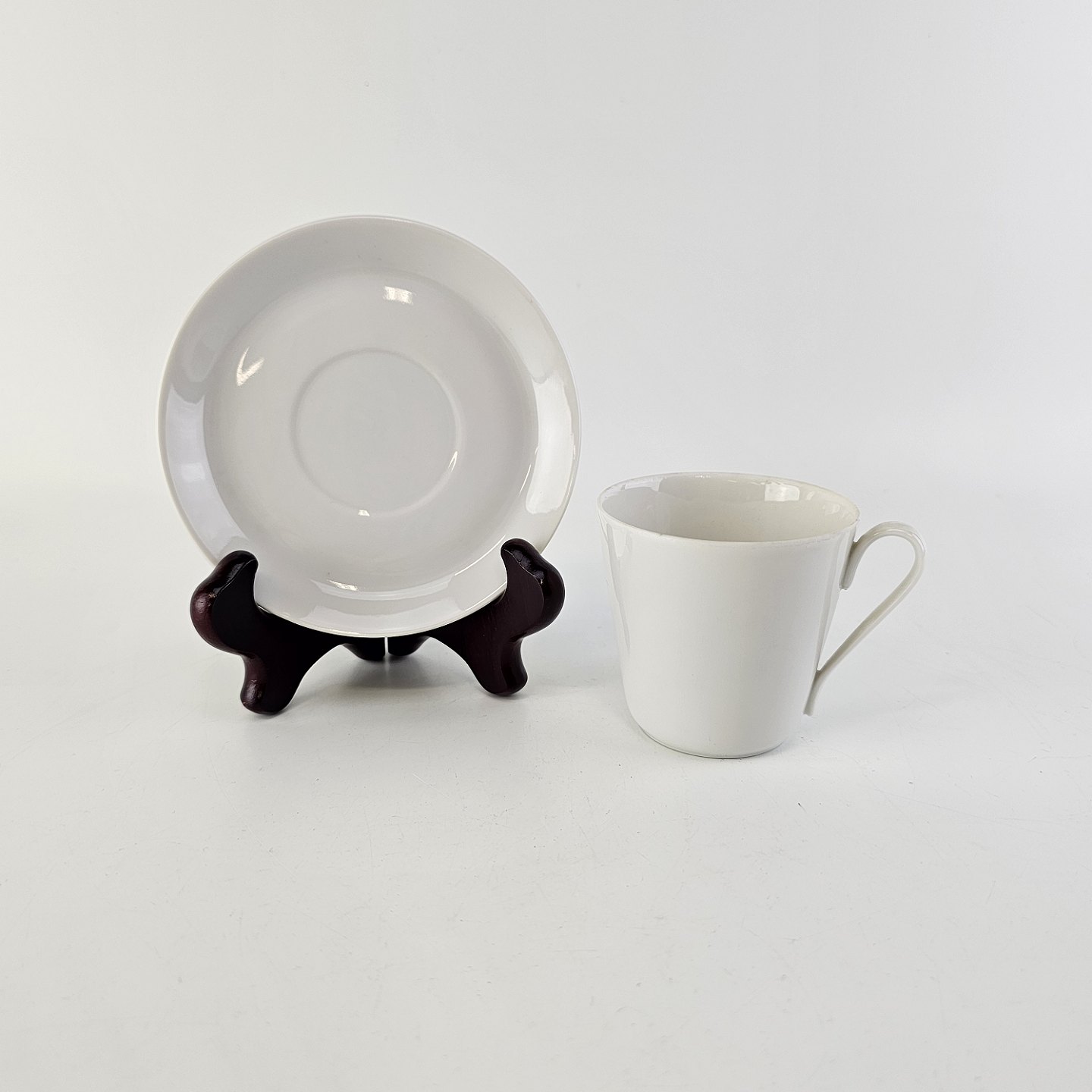 Mokkakop med underkop i porcelæn fra stellet Hvid Glasurfarvet