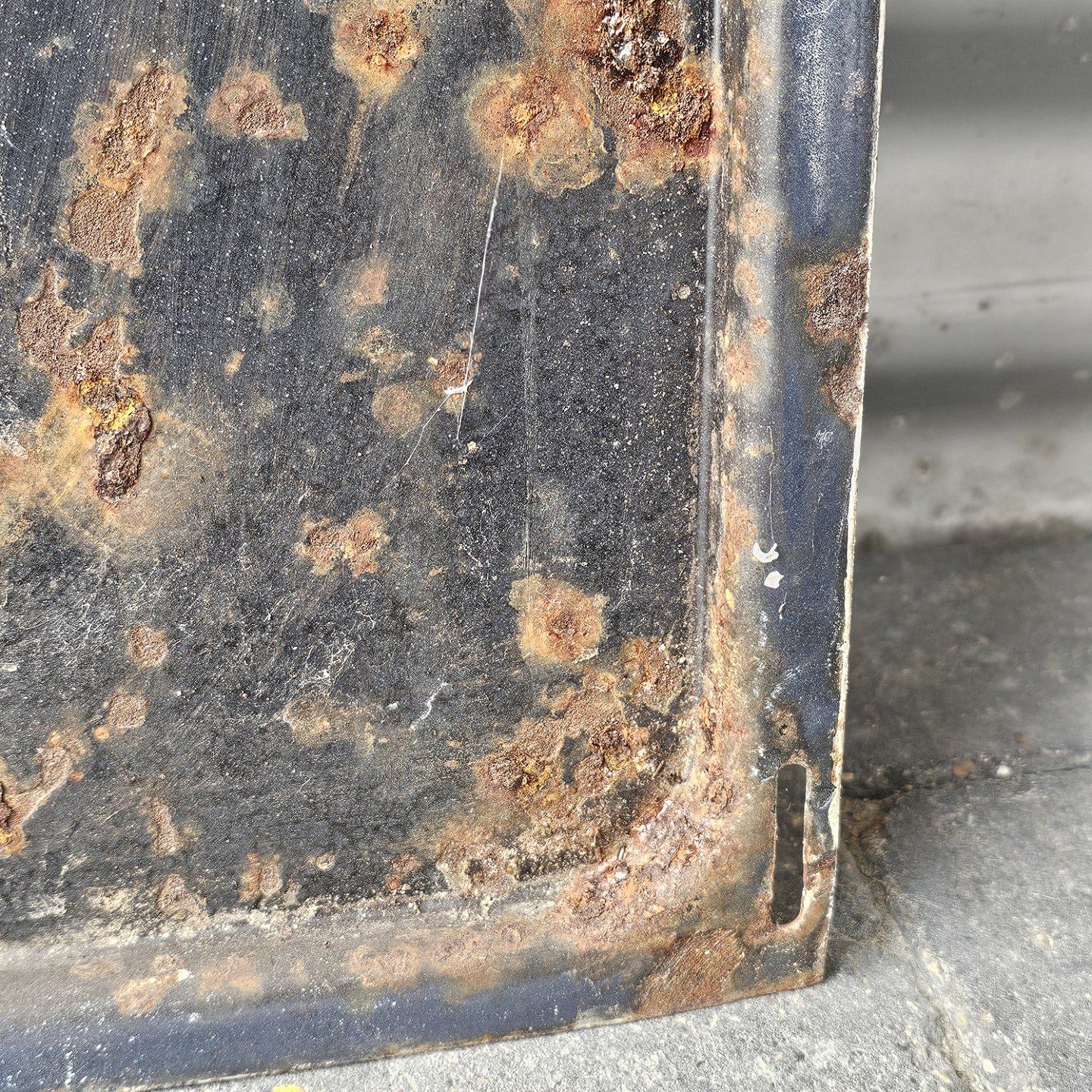 Fremstår med rust og brugsspor på bagsiden og i emaljen