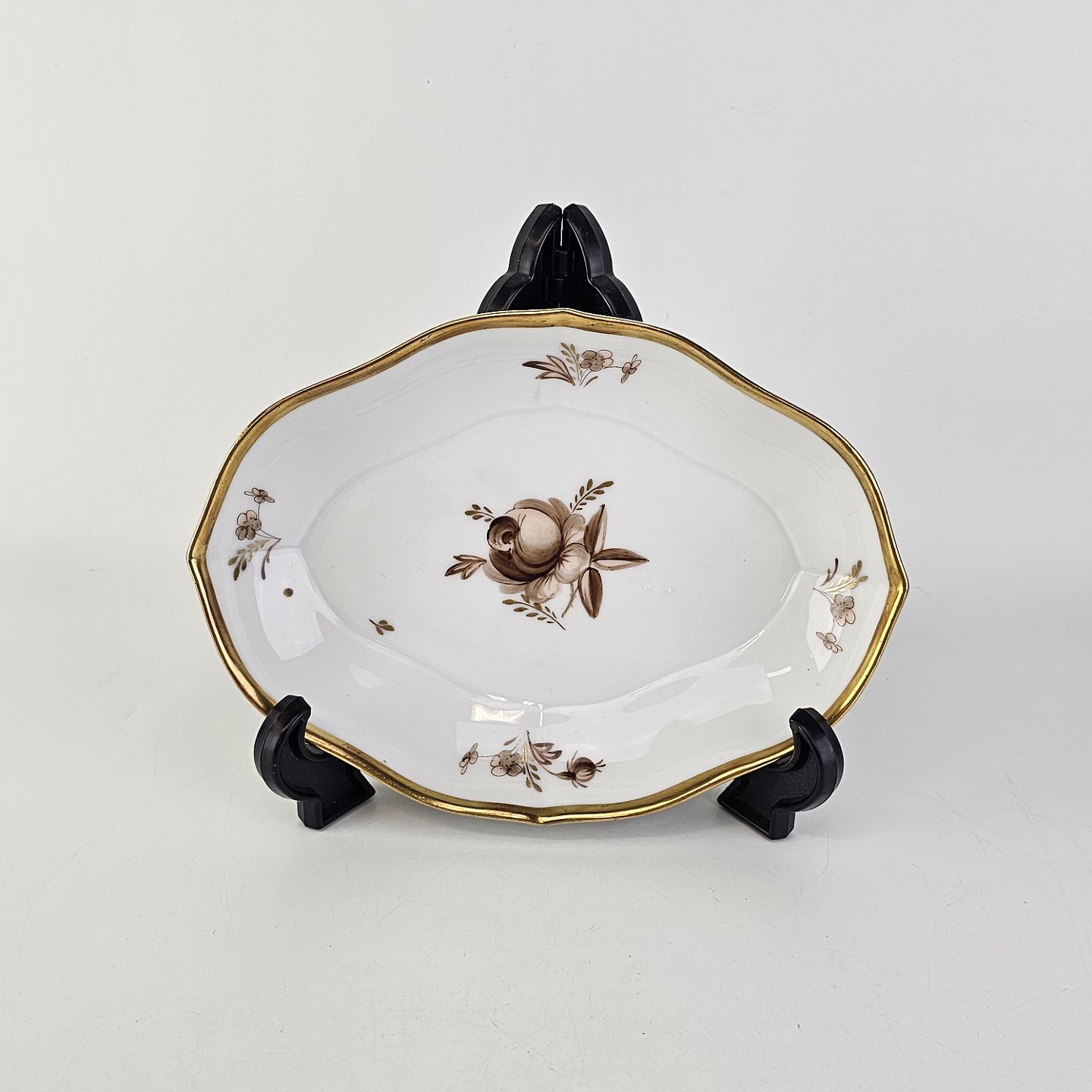 Ovalt kantet fad i porcelæn fra stellet Brun Rose