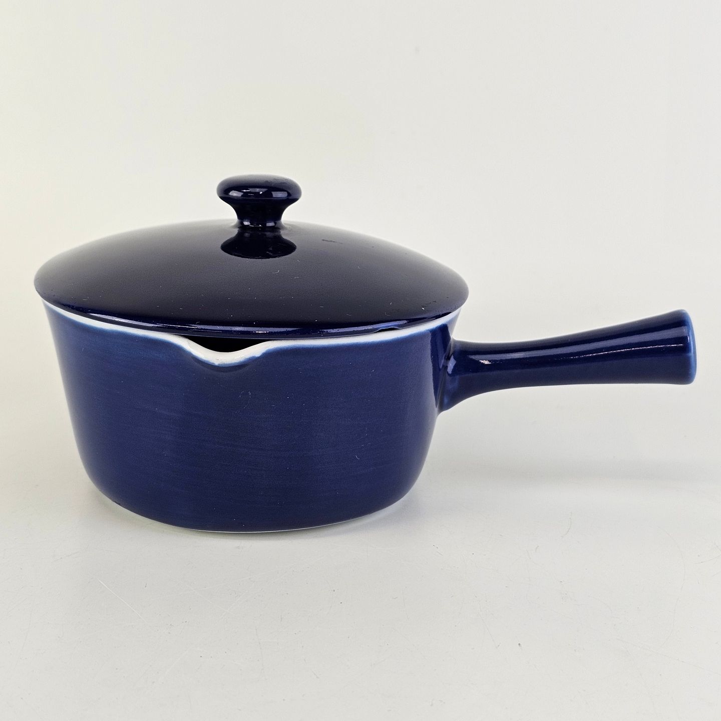 Smørnæb med håndtag og hældetud i porcelæn fra stellet Blå Glasurfarvet