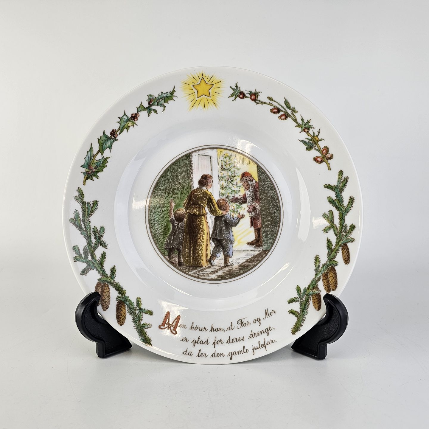Dekoreret med julemotiver og teksten: