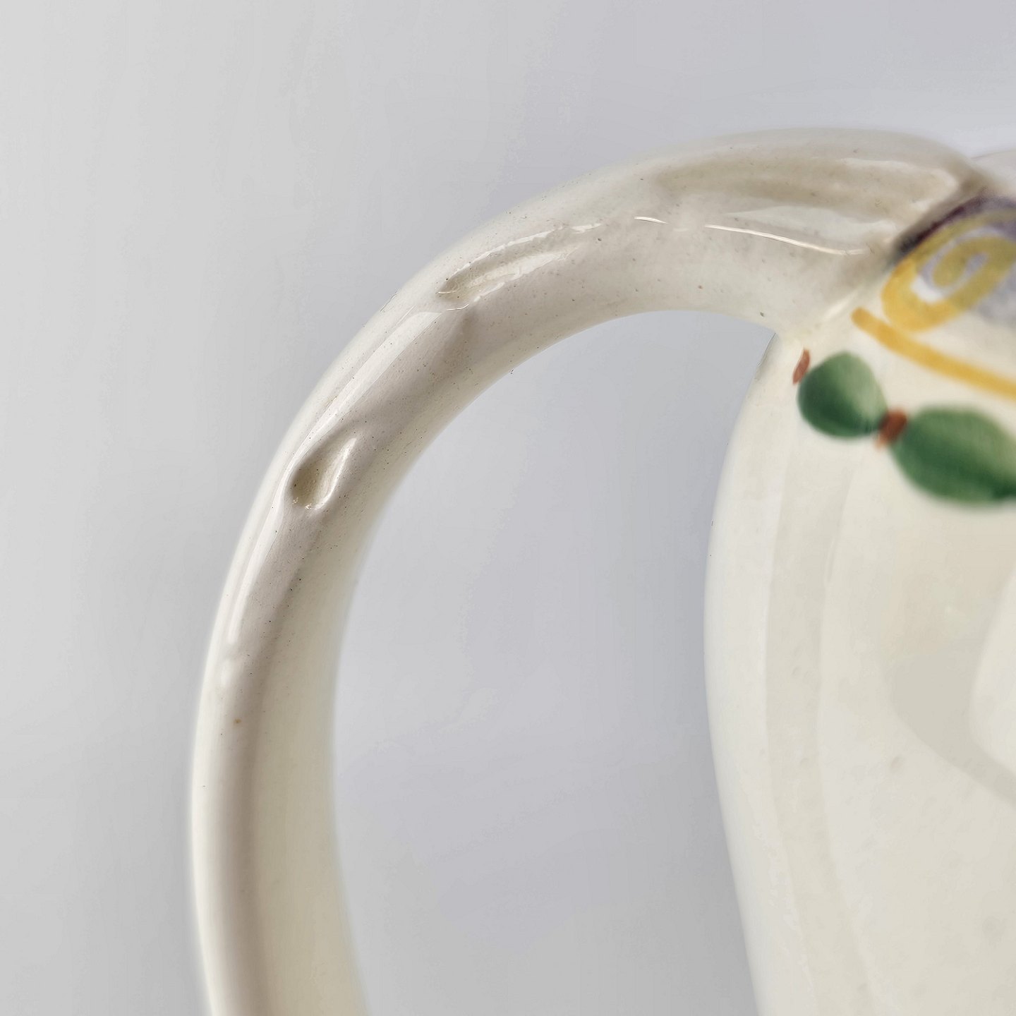 Stellet er i hvid fajance og håndmalet med dekoration af blå violer