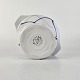 Blå Flamme er hvidt ildfast porcelæn dekoreret med blå striber, der ligner flammer.