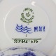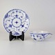 Musselmalet halvblonde er riflet hvidt porcelæn med dekoration af blå ranker og en kant med blonder.