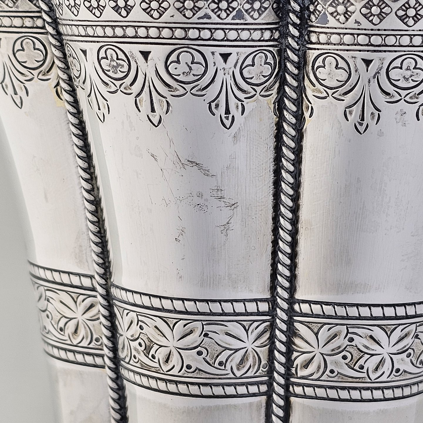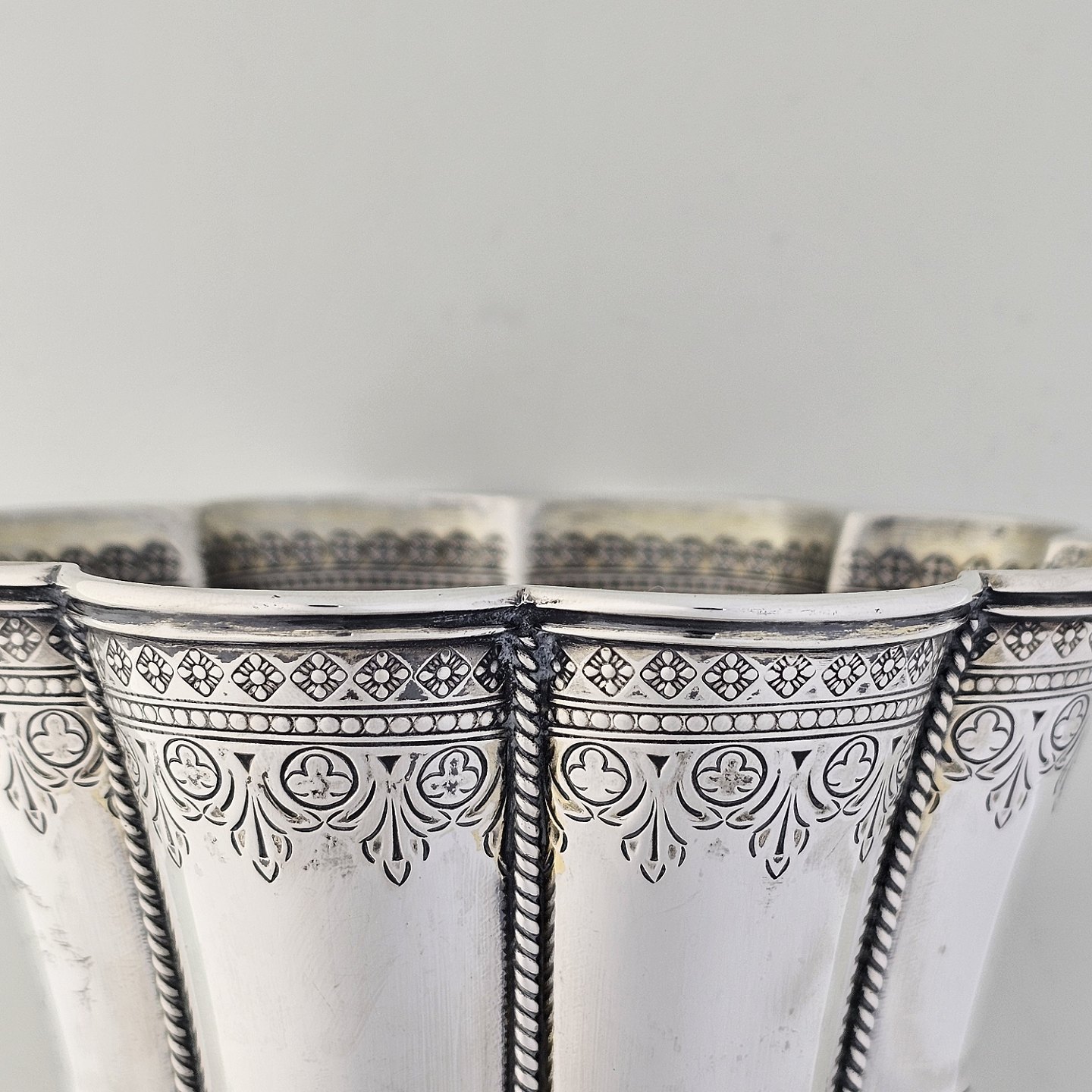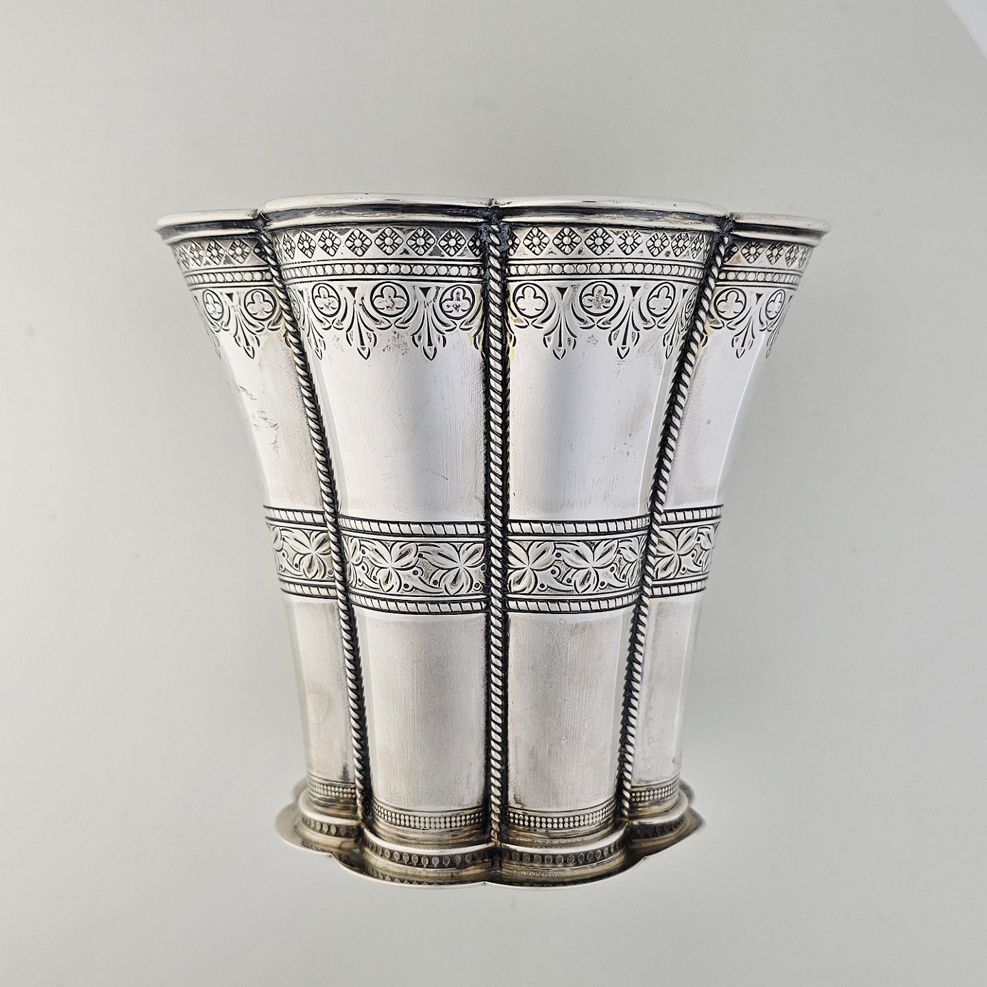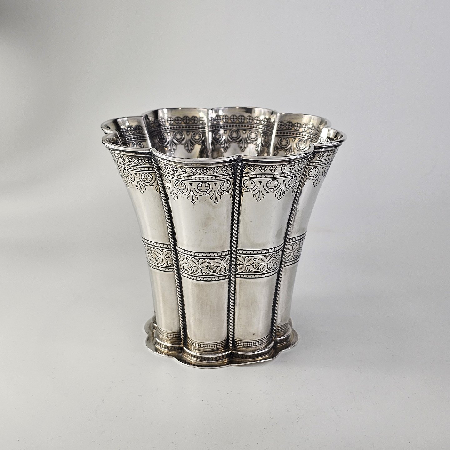 Margrethe bæger af sterling sølv med blomster-inspirerede dekorationer