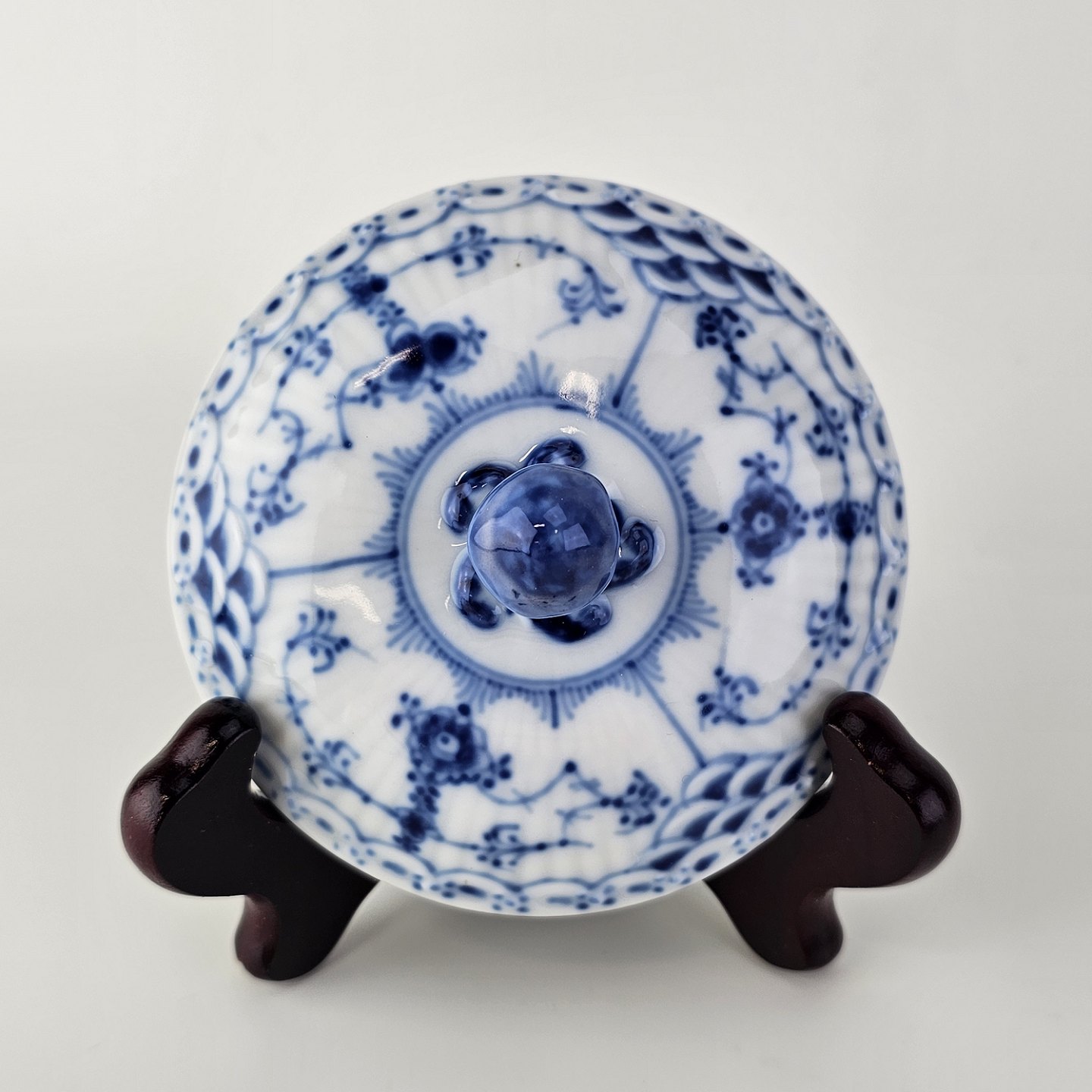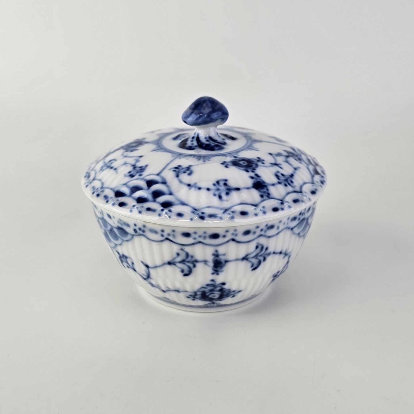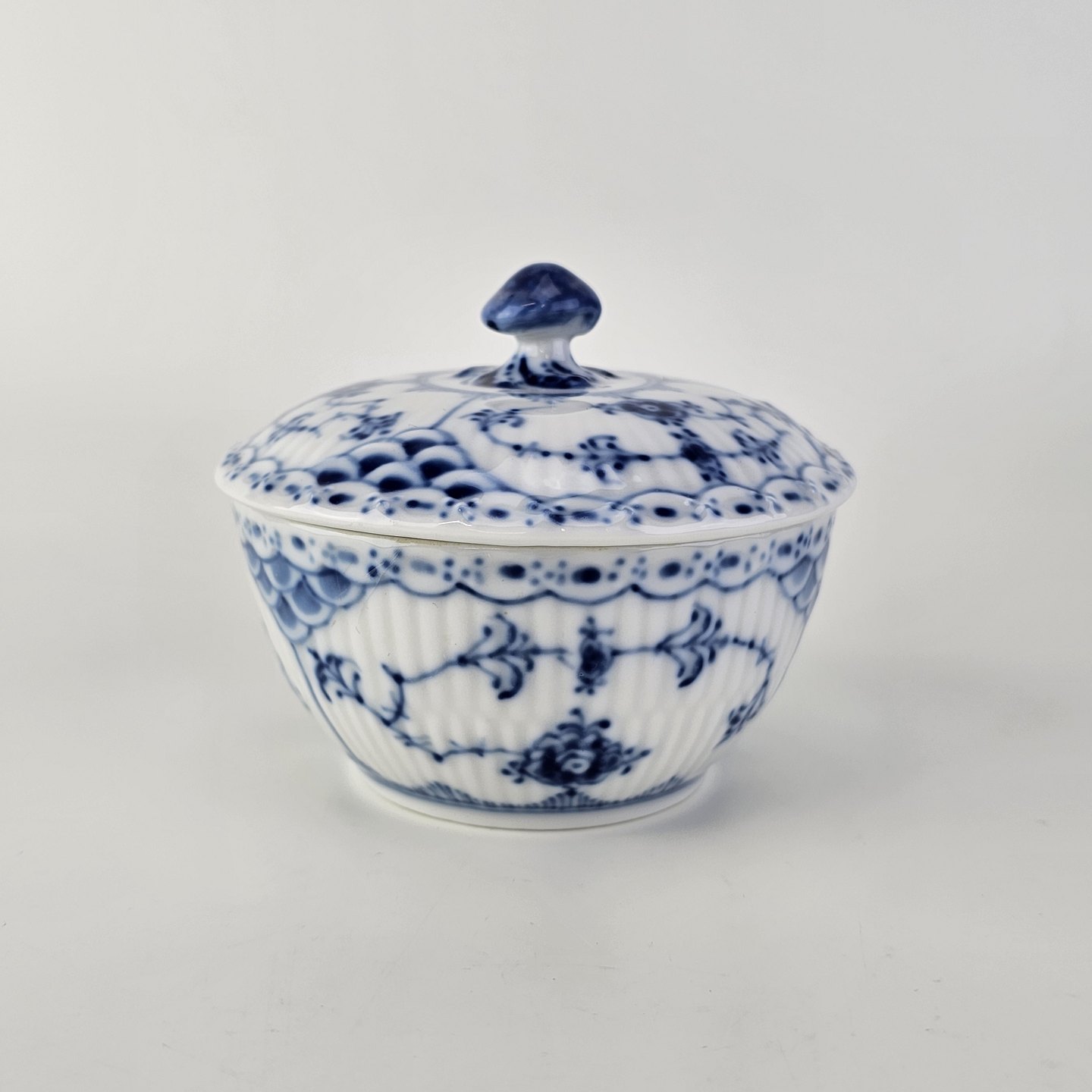 Sukkerskål i kongeligt porcelæn fra stellet Musselmalet Halvblonde