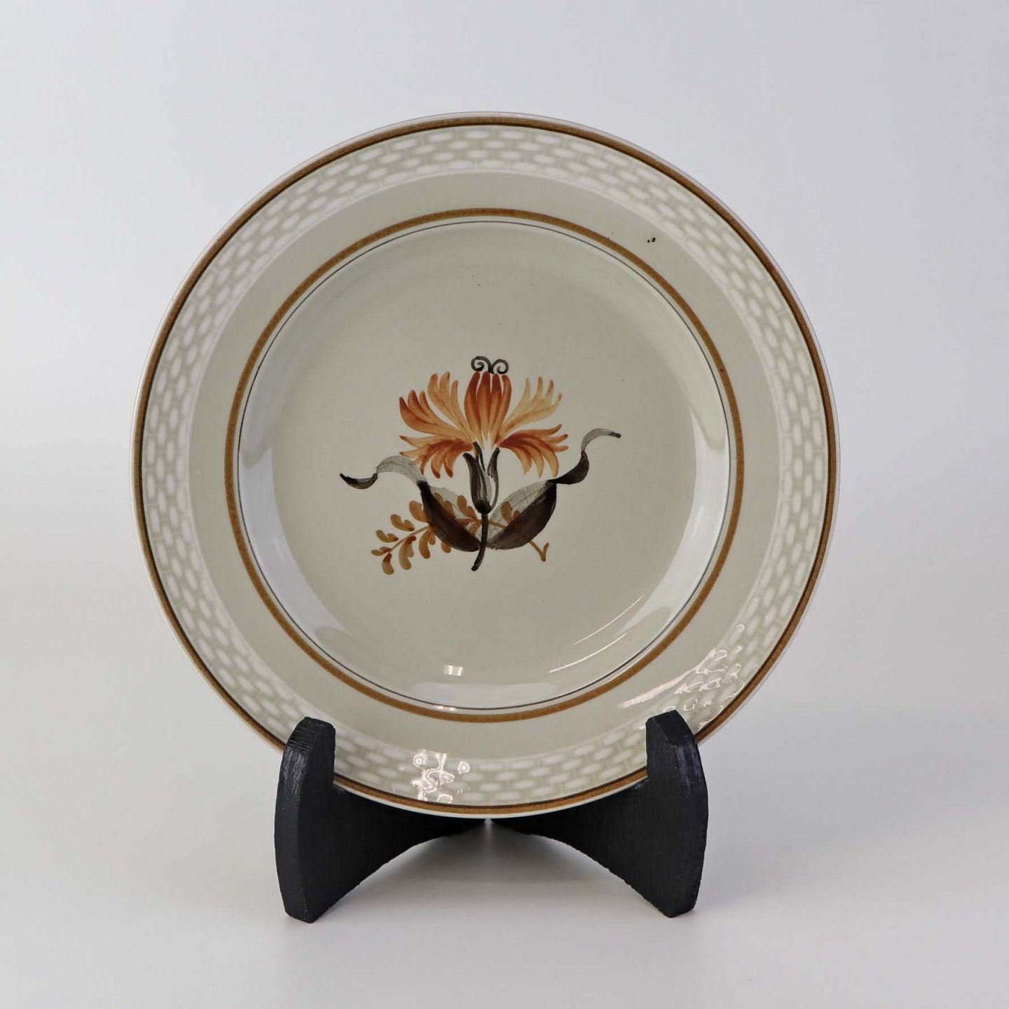 Desserttallerken i fajance fra stellet Kirsten, som blev fremstillet i perioden 1934-1957.