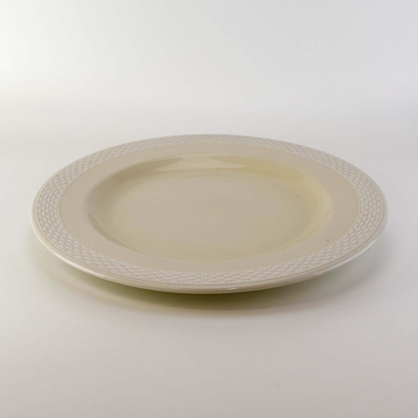 Sandfarvet fajancestel i stelform Viktoria II - Fletværk med dekoration af hvidt flet på gullig baggrund.
