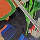 Platte i glas med abstrakt motiv i flere farver på sort baggrund