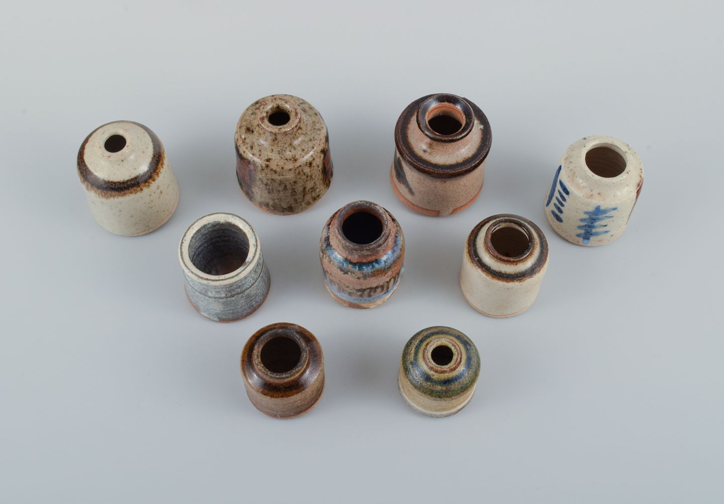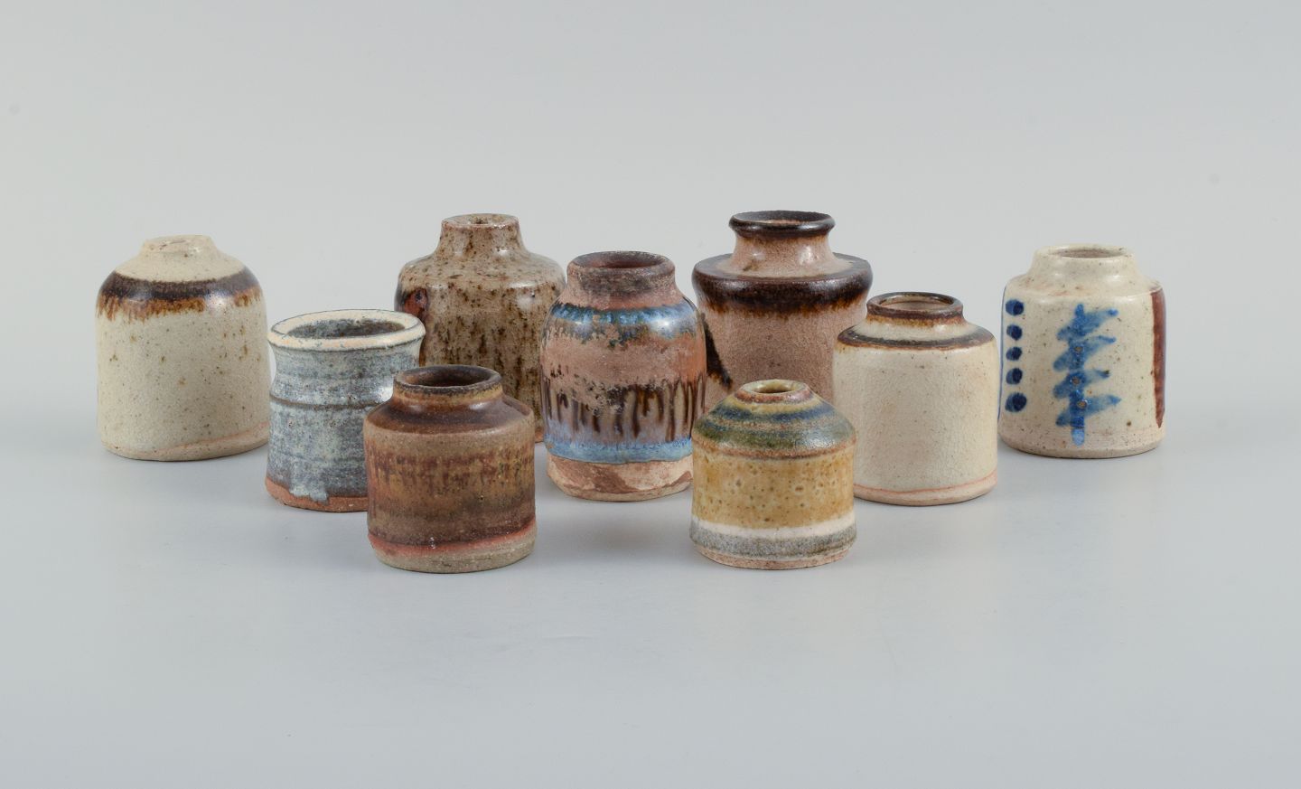 Niels Oluf 'Jeppe' Thorkelin-Eriksen (1926-1981) and Gunver Bilde Sørensen (1931-2018), Denmark. Collection of nine miniature vases in glazed ceramics. 1960 / 70's.