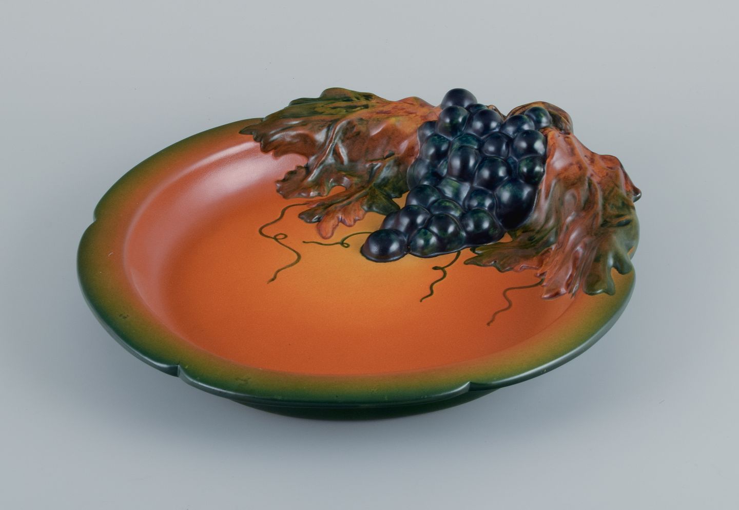 Ipsen's, Denmark. Art nouveau dish in hand-painted ceramics with grape vine and foliage. 1920s/30s. Model number 135. In excellent condition. Stamped. Measures: 31.0 x 5.5 cm.