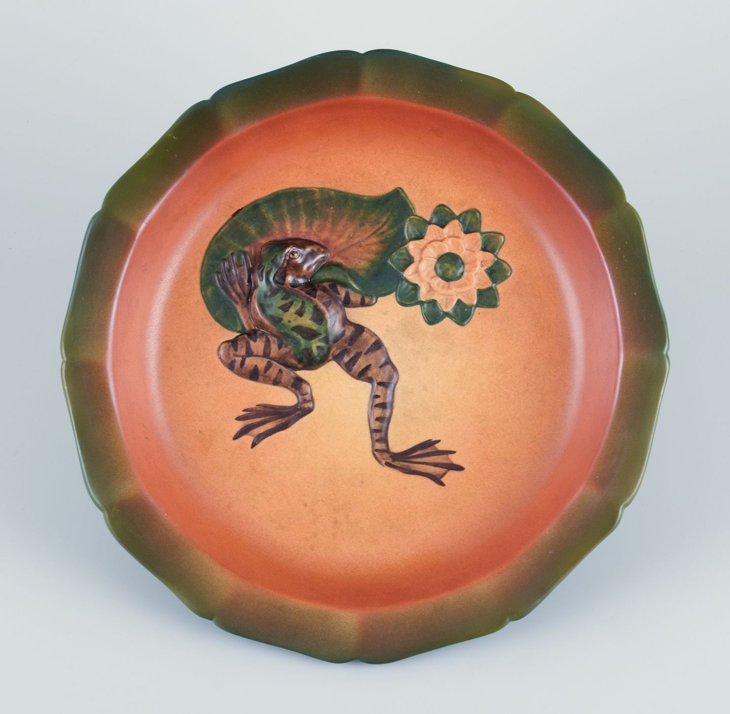 P. Ipsen's, Denmark. Circular bowl with frog in hand-painted glazed ceramic.