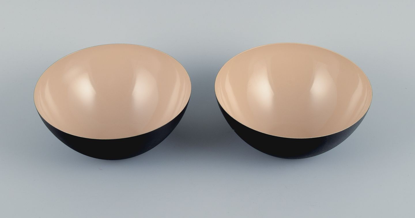 Two "krenits" bowls in metal. Beige. Design by Hermann Krenchel. The 2000s. In perfect condition. Signed "Normann Copenhagen" Dimensions: D 16.0 x H 7.0 cm.