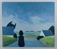 K. Westerberg, also known as Knud Horup, listed Danish artist, oil on canvas. Modernist style. Landscape with figure on road.