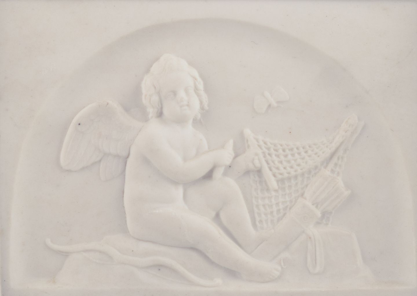 Bertel Thorvaldsen for Bing & Grøndahl. Amor makes a net. Biscuit relief.