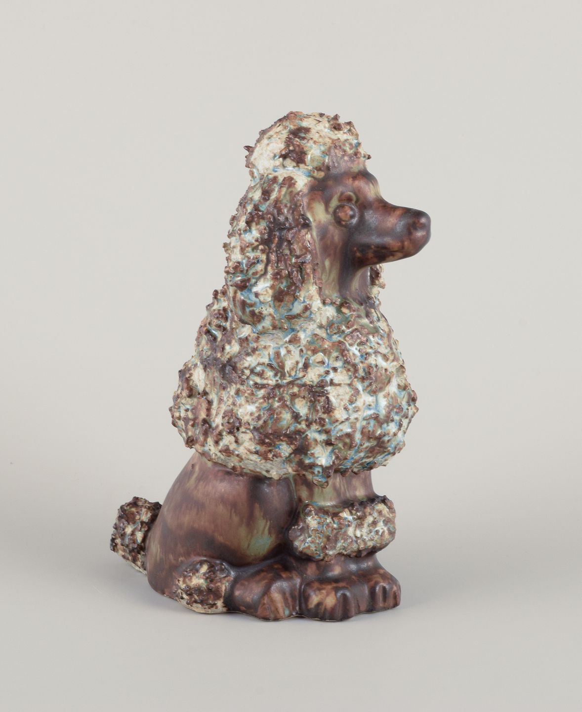 EGO Stengods, Sverige. Keramikfigur af kongepuddel. Glasur i brungrønne toner. 1970/80’erne. Stemplet. I flot stand med enkelt mindre afslag. Mål: L 11,0 cm. x B 8,0 cm. x H 18,0 cm.