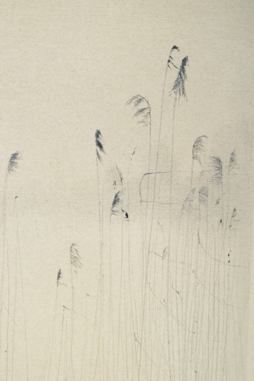 I dette sjældent subtile blad formår Gunnar Norrman at indfange naturens stilhed og vinterens askese gennem en næsten musikalsk gentagelse af de lodrette linjer, hvor sivets skrøbelige silhuetter svæver i et svagt diset lysrum. Den næsten asketiske enkelhed forædler motivet til en meditation over naturens rytme og forgængelighed. Her manifesteres Norrmans særegne sensibilitet, hvor den lavmælte gestus rummer både poesi og streng formbevidsthed.