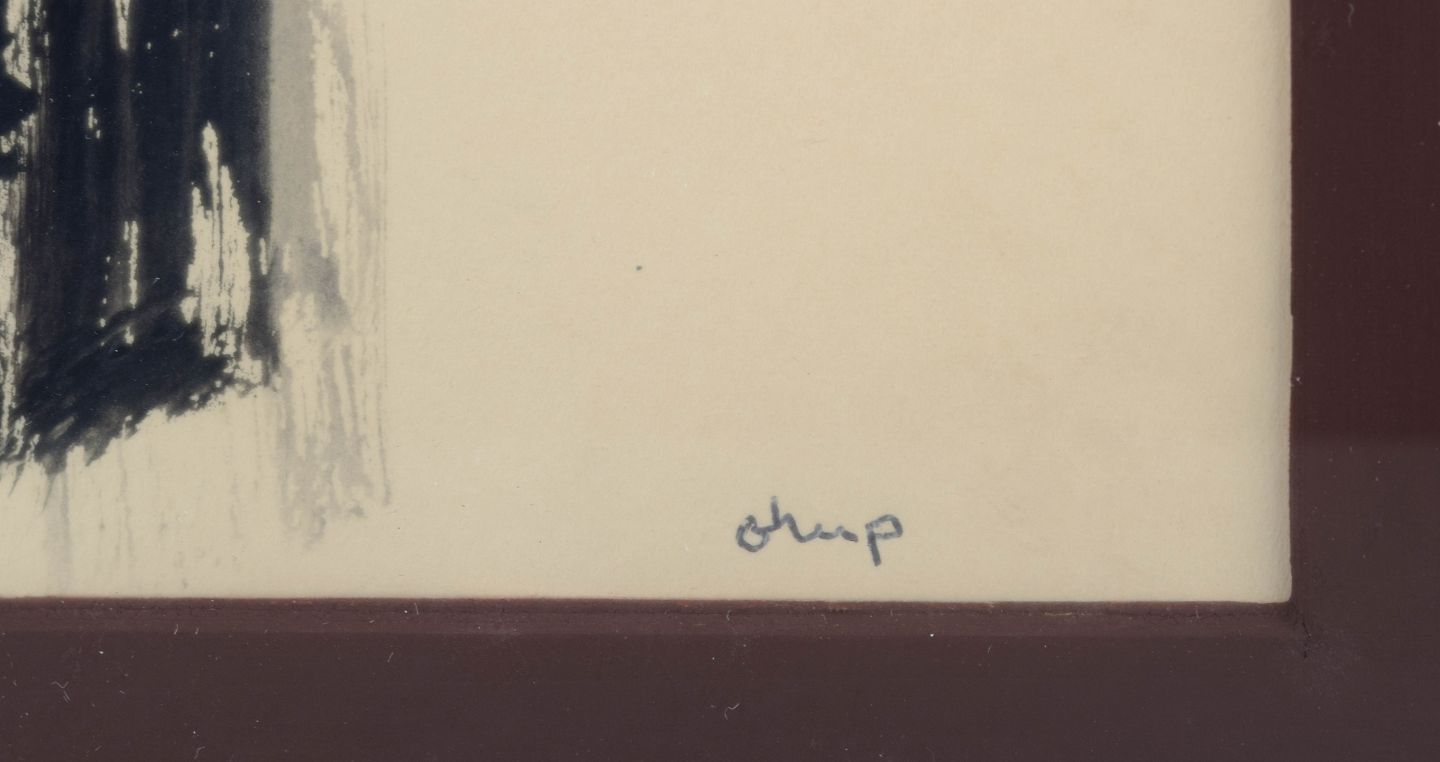 Et stemningsfuldt værk af Bengt Orup, hvor hans sans for komposition og abstraktion kommer til udtryk gennem lette penselstrøg og en raffineret farveholdning.