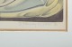 Farveætsning med surrealistisk motiv. Kompositionen viser en stiliseret kvindefigur, delvist skjult bag tunge gardiner, med et bånd og cirkulært hovedmotiv. Værket fremstår i bløde, afdæmpede farvetoner med stærk symbolik og drømmeagtig karakter.