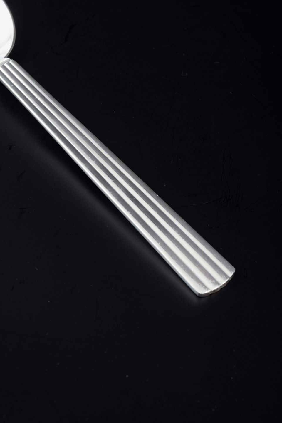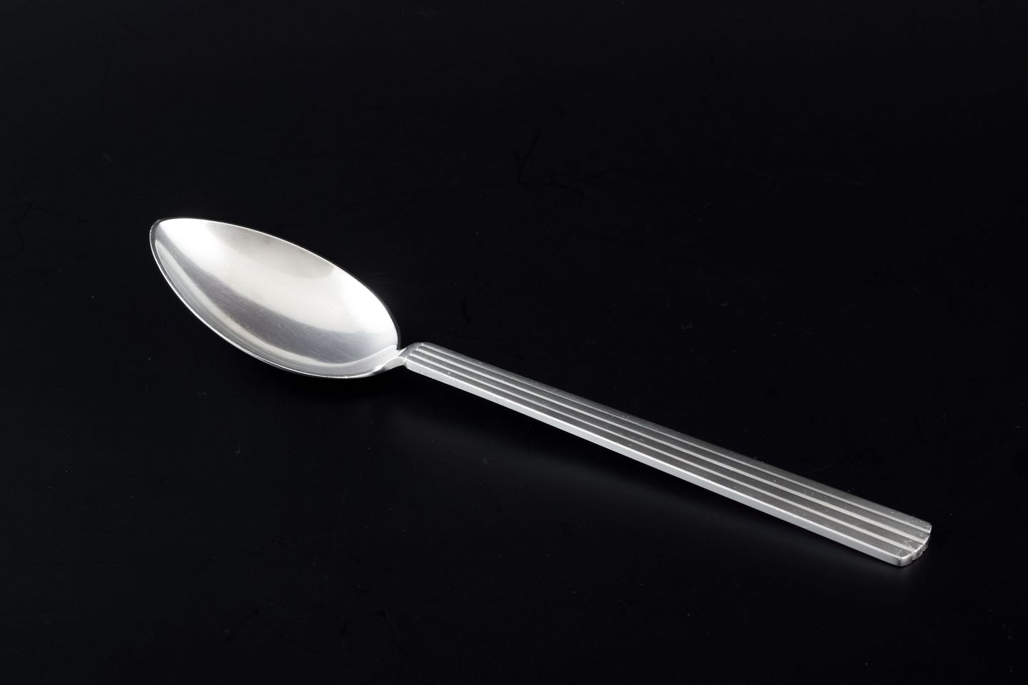 Stor middagsske i sterling sølv i det ikoniske Bernadotte-mønster, designet af Sigvard Bernadotte. Det tidløse formsprog med parallelle rifler i skaftet gør bestikket til et af Georg Jensens mest populære og klassiske designs.