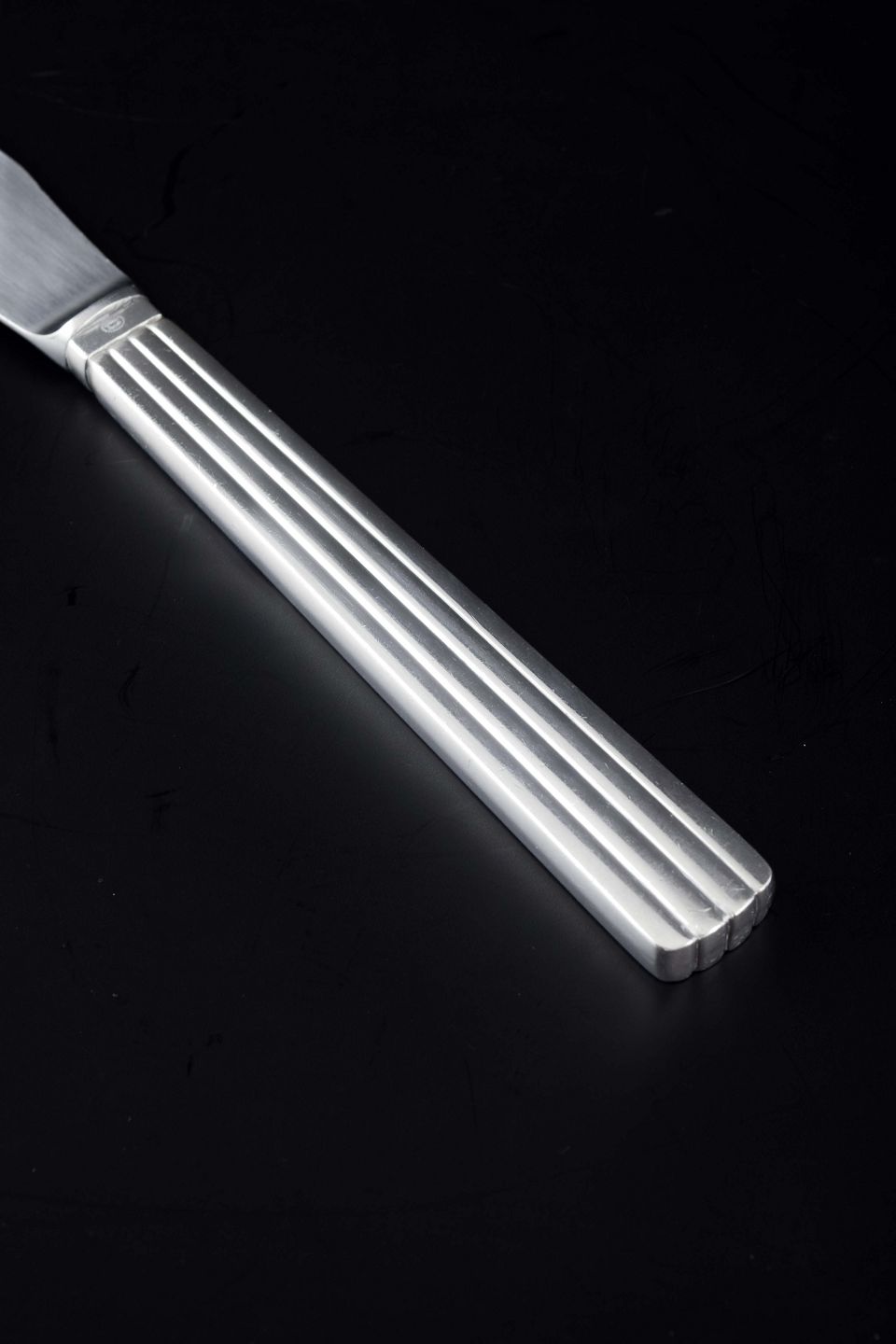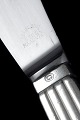 Frokostkniv i sterling sølv og rustfrit stål i det ikoniske Bernadotte-mønster, designet af Sigvard Bernadotte. Det tidløse formsprog med parallelle rifler i skaftet gør bestikket til et af Georg Jensens mest populære og klassiske designs.
