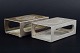 Støbt tin, rektangulær form med åbne sider og ovalt relief med kvindefigur på oversiden. Begge mærket JUST i trekant, Denmark samt modelnumrene 260 og 78.