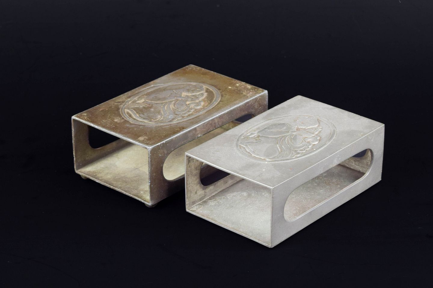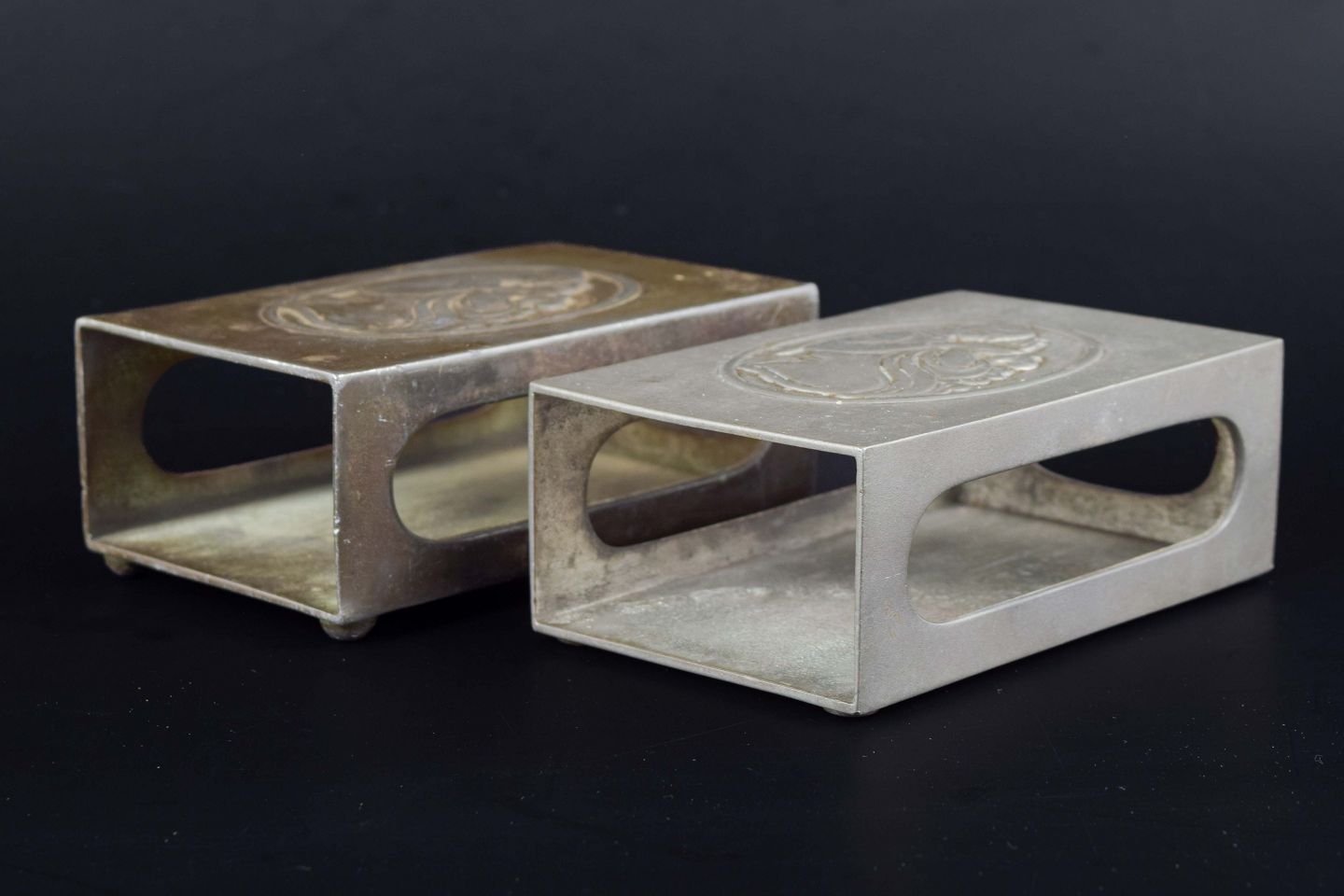 Just Andersen. To tændstikæskeholdere i tin, model 260 og 78. Danmark, ca. 1930.
