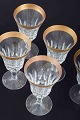 Fem krystalglas med guldbelagt rand, midt 1900-tallet.