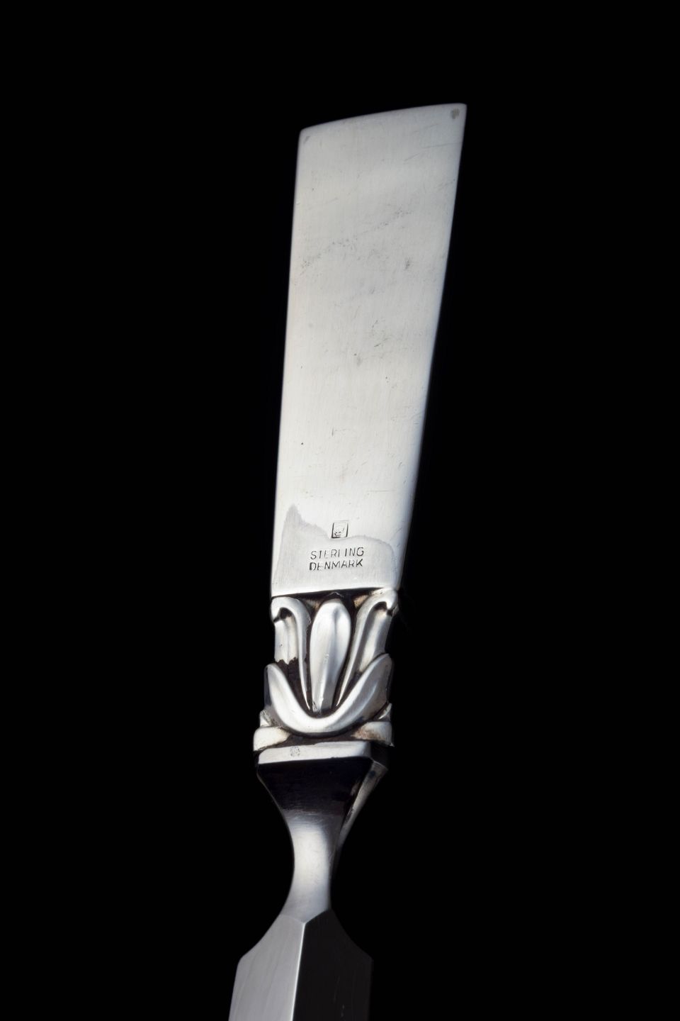 En klassisk skrivebordsgenstand fra Georg Jensen, fremstillet i perioden 1933–1944 med skaft i sterling sølv og blad i rustfrit stål.