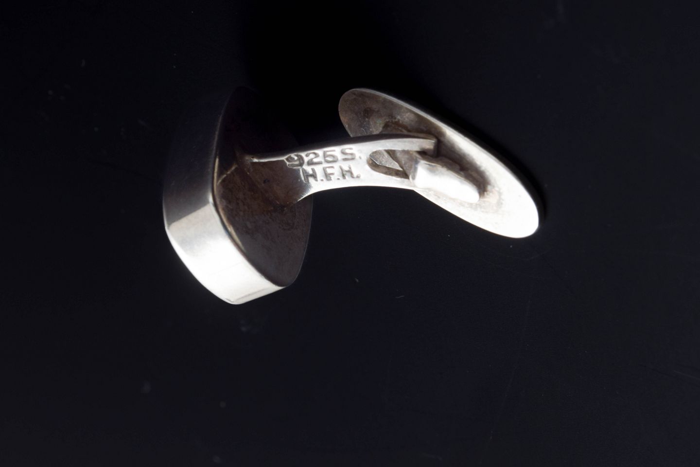 Manchetknapper med indfattet rød karneol (925S, N.F.H.).