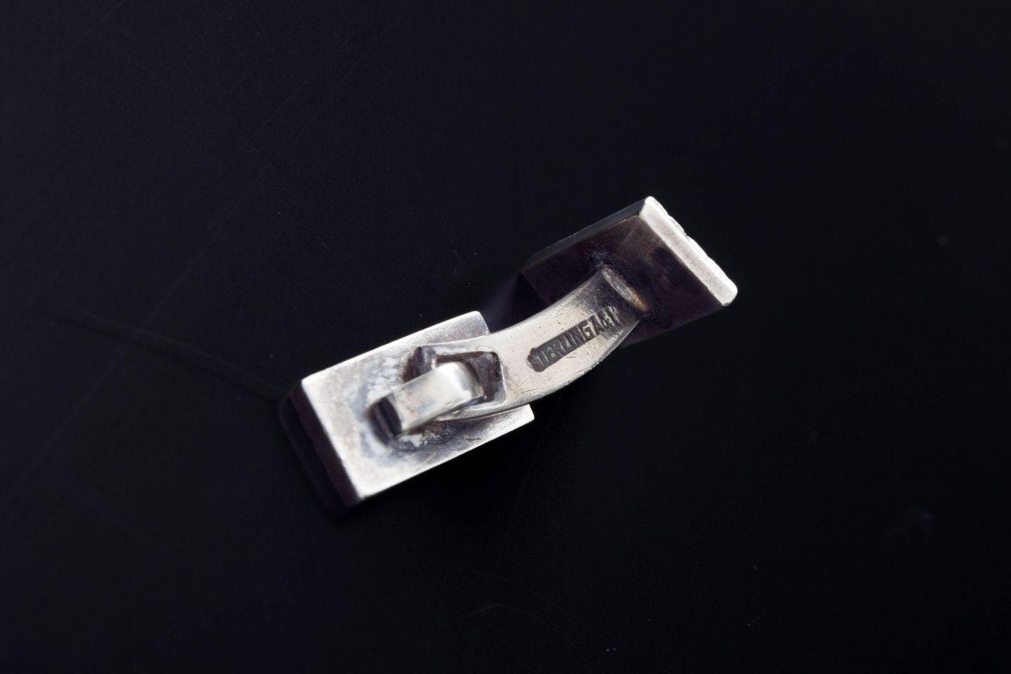 Geometriske rektangulære manchetknapper (stemplet “Sterling A&I”).