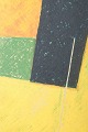 Et farverigt litografi af Osmund Hansen med geometriske former i gul, grøn og sort, der viser kunstnerens karakteristiske konstruktive billedsprog. Værket er usigneret.