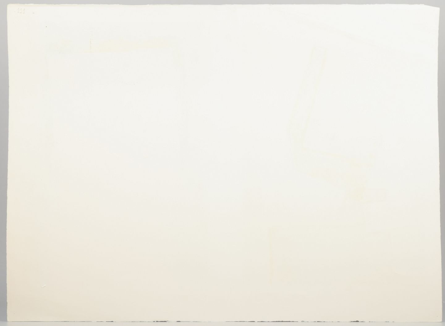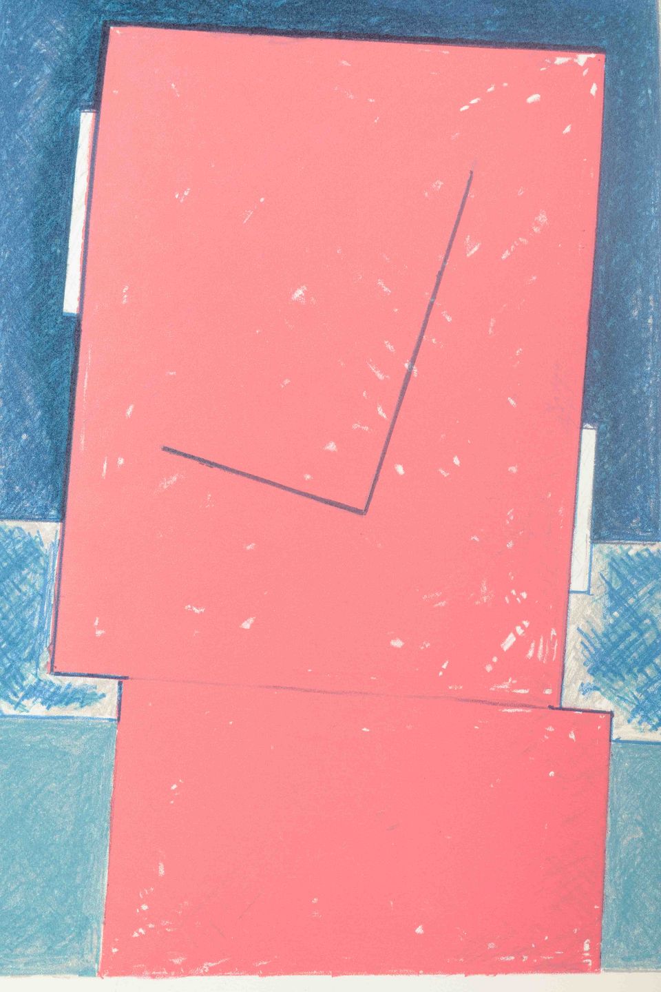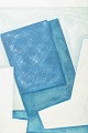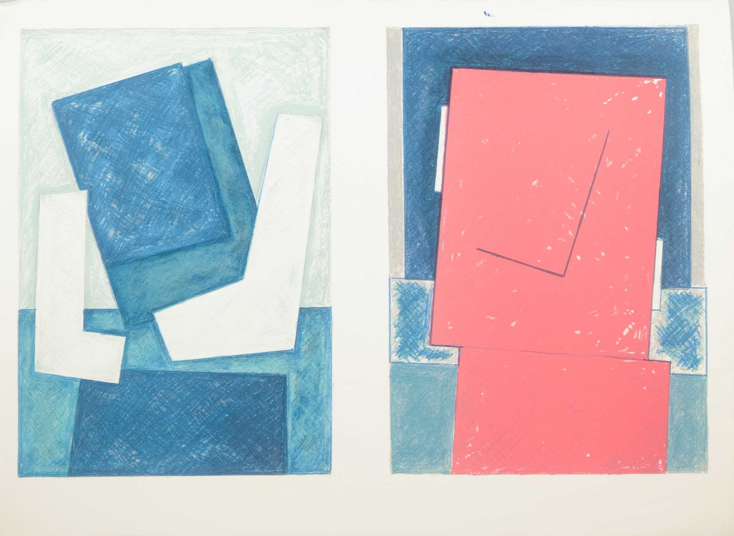 En dobbeltkomposition af Osmund Hansen med geometriske, abstrakte former i blå og rød, trykt på ét ark. Værket er usigneret.