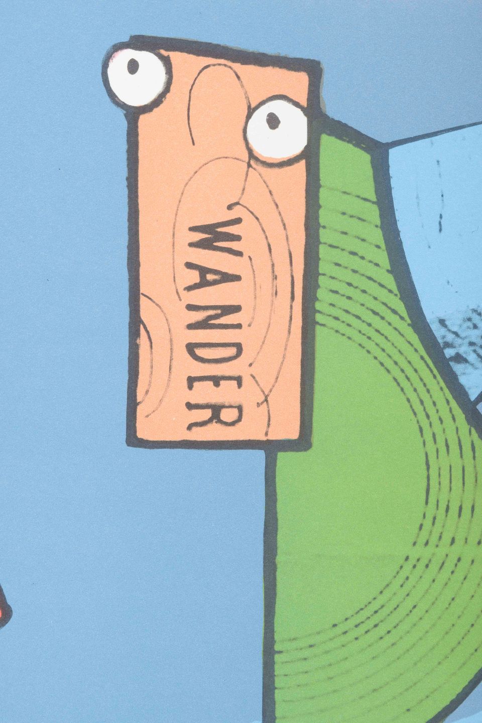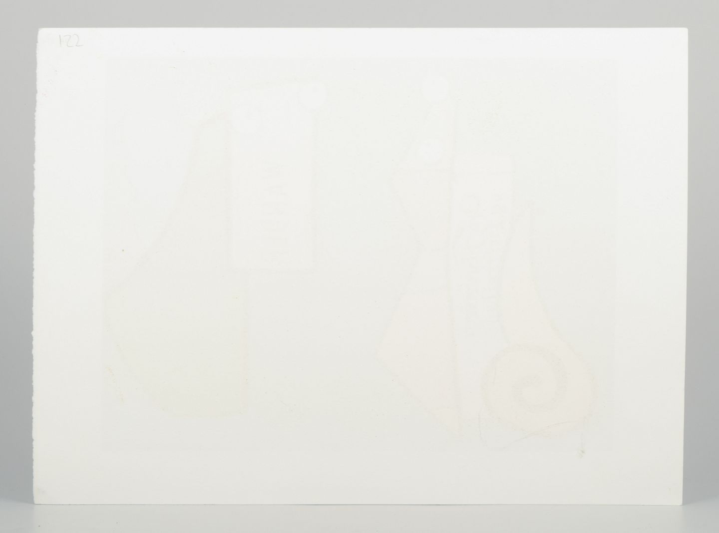 Et dekorativt litografi af Karin Olesen, karakteriseret ved hendes legende formsprog og stærke farveflader. Trykket er udført i et begrænset oplag på 150 eksemplarer, hvoraf dette er nummer 149.