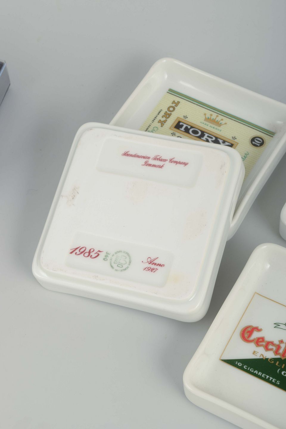 Founded in Copenhagen in 1853, Bing & Grøndahl is renowned for fine porcelain and collectible pieces. In the 1980s the factory also produced smaller series of decorative utility items, including ashtrays with advertising and tobacco motifs. These four examples reflect both the quality of Danish porcelain craftsmanship and the graphic design of the period. After the 1987 merger with the Royal Porcelain Factory (Royal Copenhagen), Bing & Grøndahl became part of Royal Copenhagen, making such objects especially interesting collector’s items today.