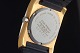 Rektangulært ur med tofarvet urkasse i forgyldt og børstet titanium, minimalistisk urskive i grå og guld, samt originalt integreret armbånd.
