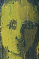 Et ekspressivt portræt udført i en kraftig og pastos penselføring, hvor grønne, gule og blå nuancer dominerer. Figuren fremstår både stiliseret og rå, med en nærmest drømmeagtig karakter, understreget af de stærke kontraster og den stoflige overflade.