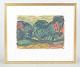 Et ekspressivt og farvemættet landskab, hvor grønne og blå toner dominerer billedfladen i et levende spil med røde og gule accenter. De brede, dynamiske penselstrøg og den rytmiske komposition understreger Delefors’ ekspressionistiske billedsprog.
