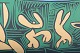 Et livfuldt og koloristisk værk af Pablo Picasso, udført som linoliumstryk i 1960, der viser en bacchansk scene med figurer og tyr i en stiliseret, næsten arkaisk form.