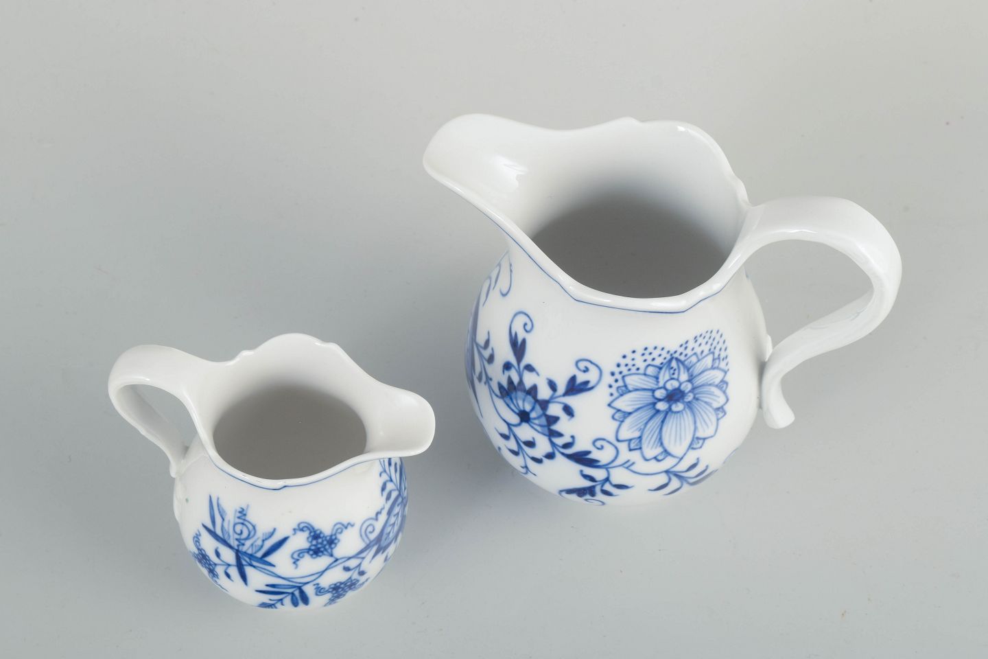 Meissen er Europas ældste porcelænsfabrik, grundlagt i 1710. Deres karakteristiske blåmalede dekorer, især "Zwiebelmuster" (løg-mønsteret), er blandt de mest ikoniske i verden. Meissen-produkter er kendetegnet ved høj kvalitet og de to korslagte sværd som mærke under bunden. Forskellige kvalitetsmarkeringer (såsom ridser i sværdmærket) indikerer sorteringen – 1. sortering uden fejl, mens lavere sorteringer markerer små skønhedsfejl.
