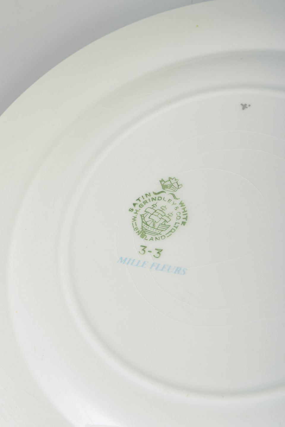 Grindley var en af Englands kendte fajanceproducenter, grundlagt i 1880’erne i Tunstall, Staffordshire. Serien Mille Fleurs er et eksempel på virksomhedens dekorative servicer fra 1950’erne, hvor farverige og romantiske mønstre var populære i mange europæiske hjem.