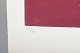 Abstrakt komposition i rødlige toner, hvor enkle konturer antyder menneskelige former i et stramt, ekspressivt udtryk. Et grafisk blad, der viser kunstnerens særlige evne til at skabe nærvær og dramatik med få virkemidler.