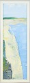 Et modernistisk kystlandskab i lyse blå, grønne og sandfarvede toner, hvor Gotlands karakteristiske klinter og hav mødes i et stiliseret og forenklet billedsprog. Maleriet er præget af en stoflig penselføring og et klart geometrisk formsprog, som fremhæver naturens kontraster og ro.