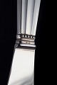 Elegant lang middagskniv i det klassiske “Konge / Acorn”-mønster, designet af Johan Rohde i 1915. Skaftet er udført i sterling sølv, mens bladet er i rustfrit stål.