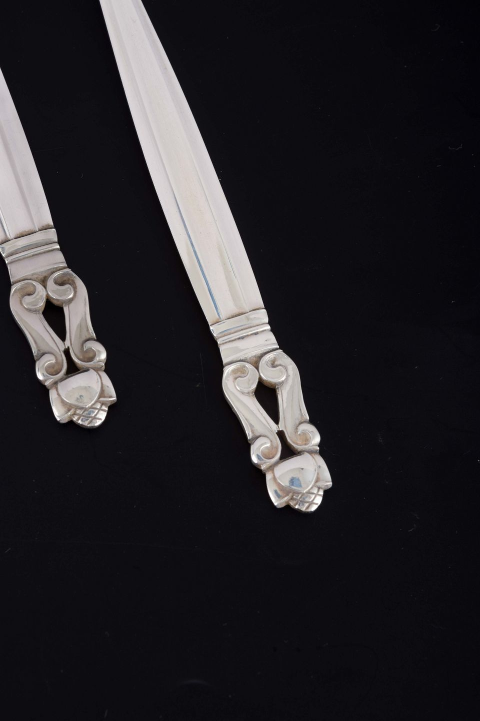 Elegante gafler i det klassiske “Konge / Acorn”-mønster, designet af Johan Rohde i 1915. Dekoreret med det karakteristiske akantusblad og agernmotiv.