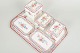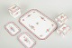 Rectangular tray with four lidded boxes in varying sizes. White porcelain with polychrome floral decoration and a characteristic flowing border in Art Deco / chinoiserie style — commonly referred to as the “Peacock” pattern.