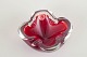Organisk fritformet håndblæst skål i intens rubinrød sommerso-glas med blødt indfoldet rand og svævende klarhedsdybde — et klassisk eksempel på studioglas fra Murano.