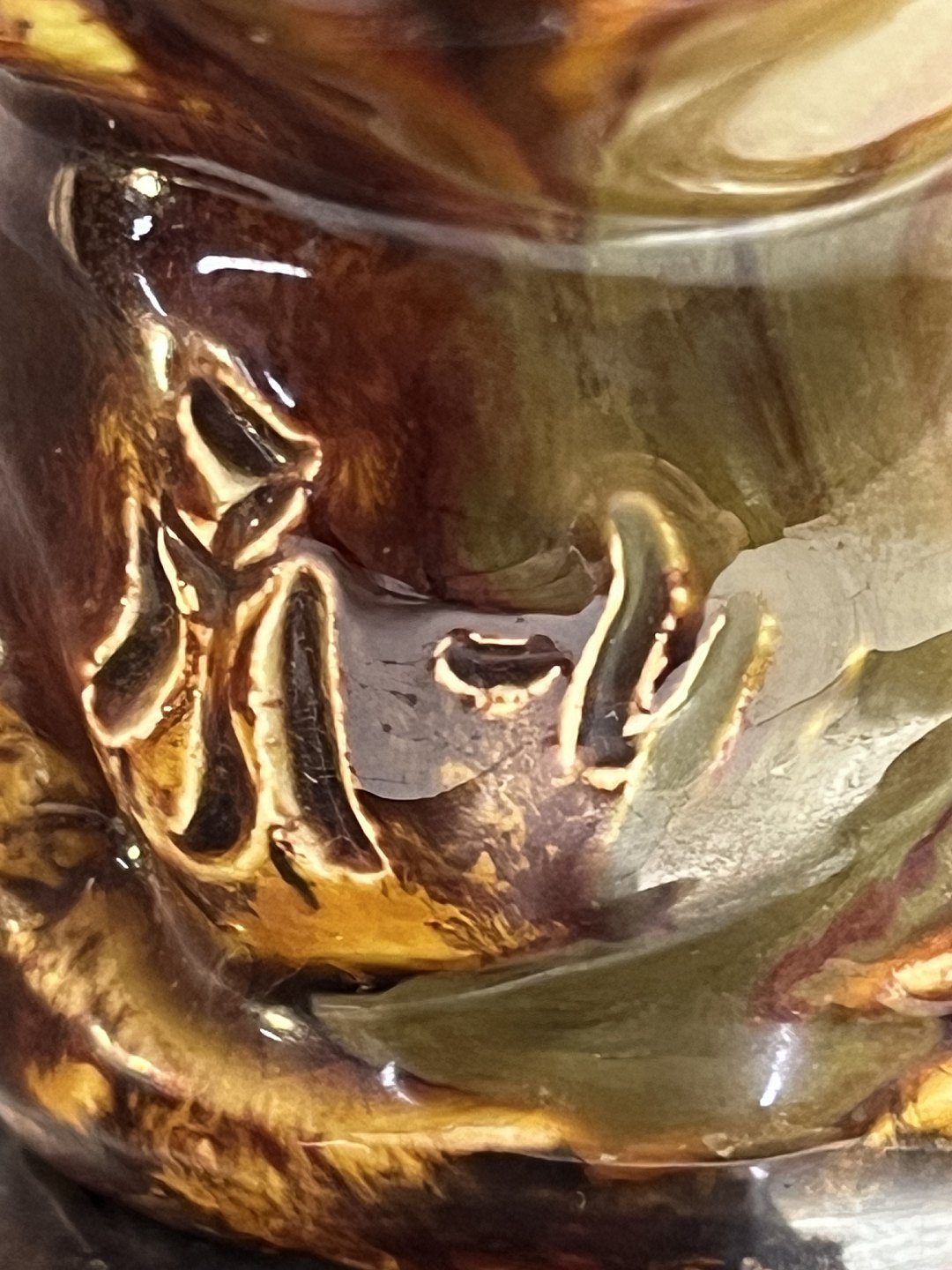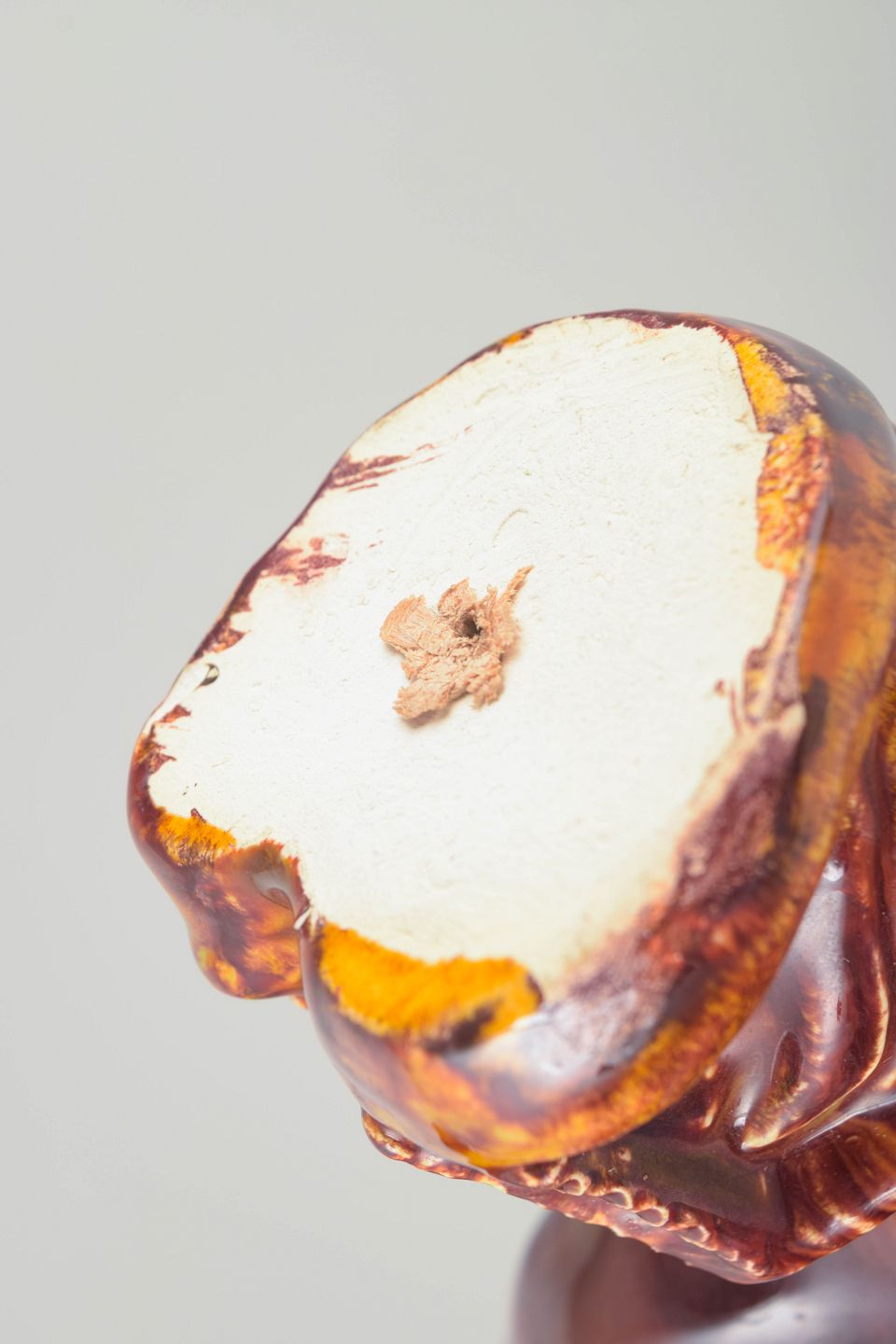Unique hand-modelled bird figure in glazed stoneware with a vivid fiery red-orange glaze and expressive sculptural modelling. Signed with monogram underneath.