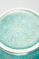Low round bowl in turquoise-glazed stoneware with silver inlays along the sides and in the bottom. Slightly undulating, press-moulded rim.